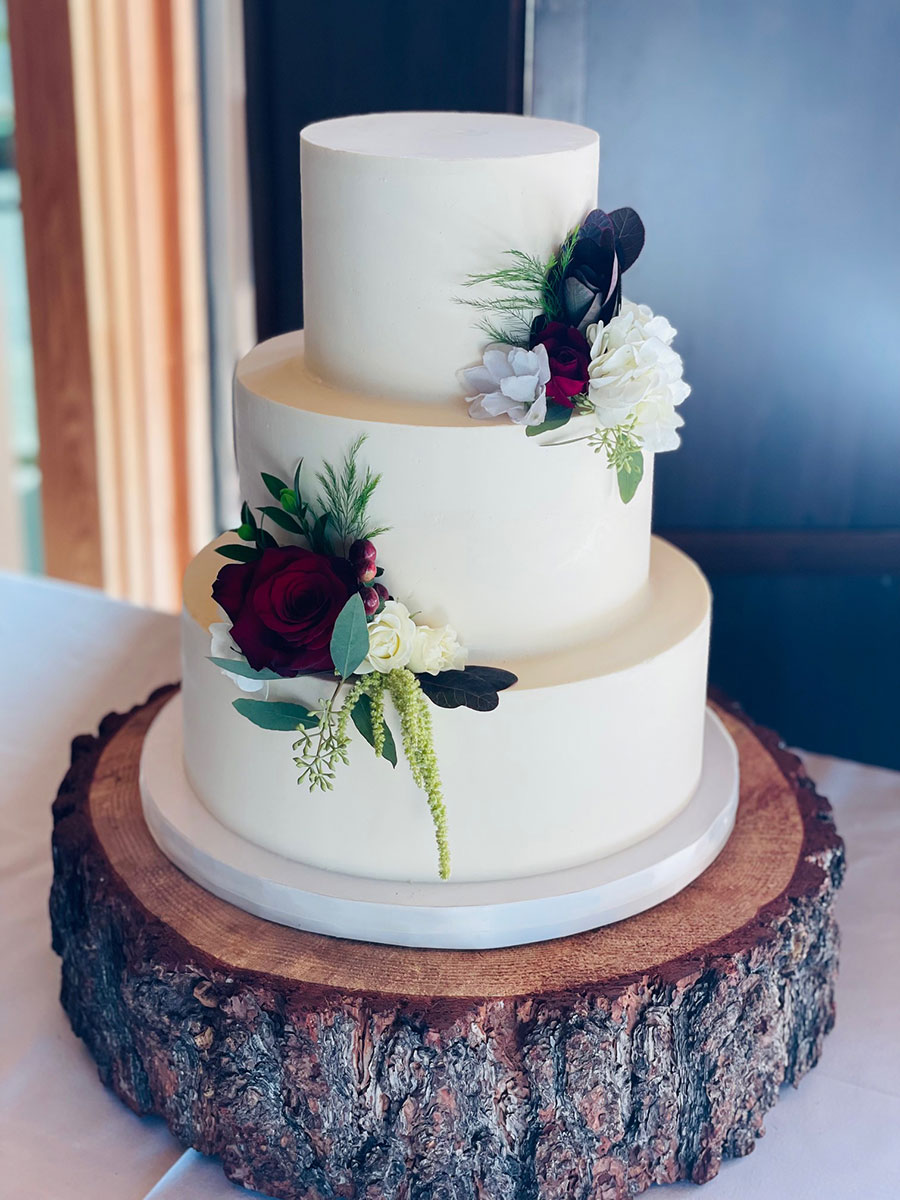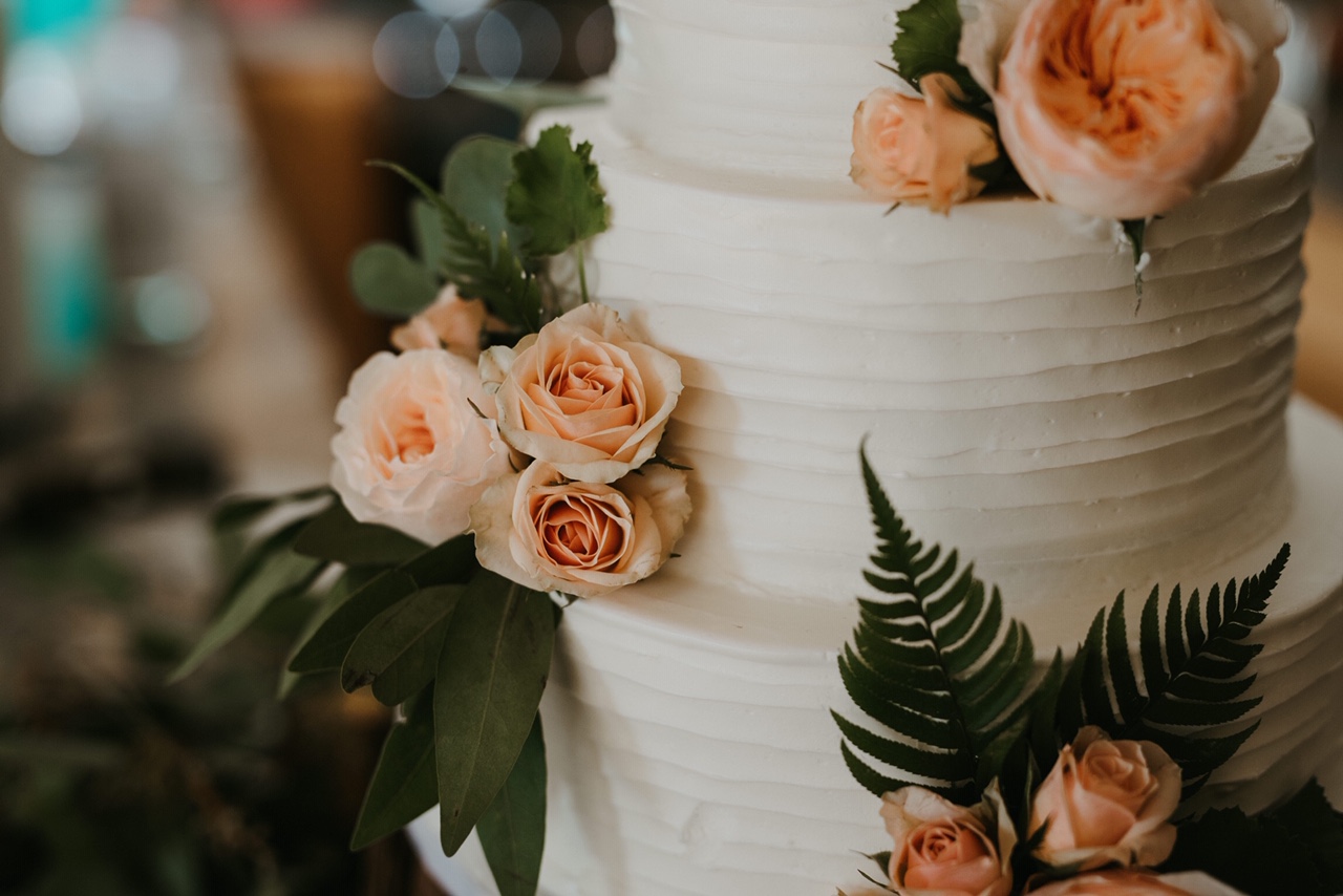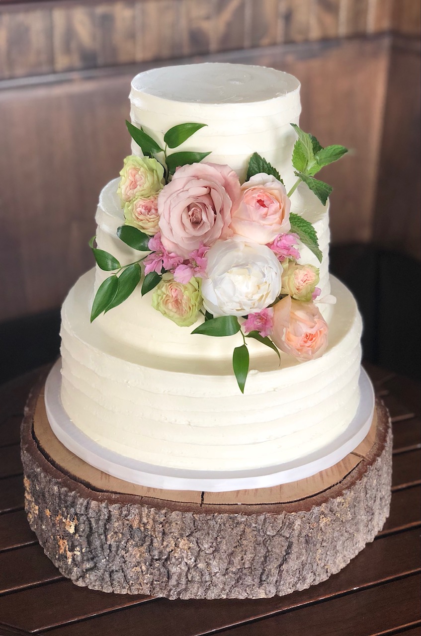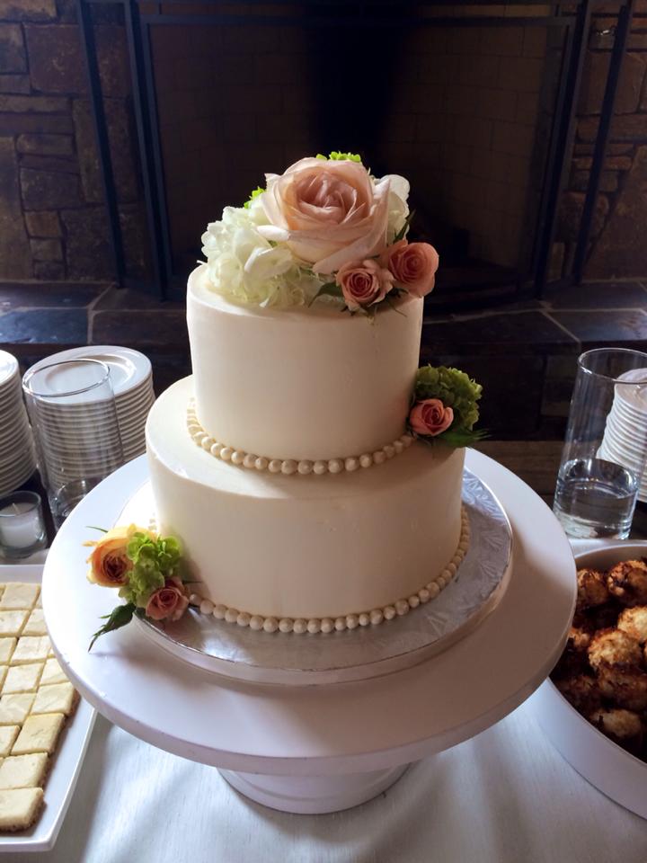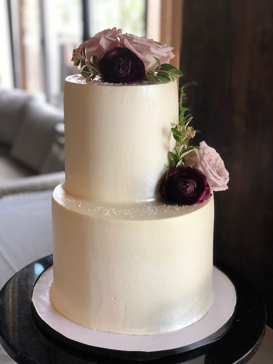 - Buttercream, white roses & eucalyptus