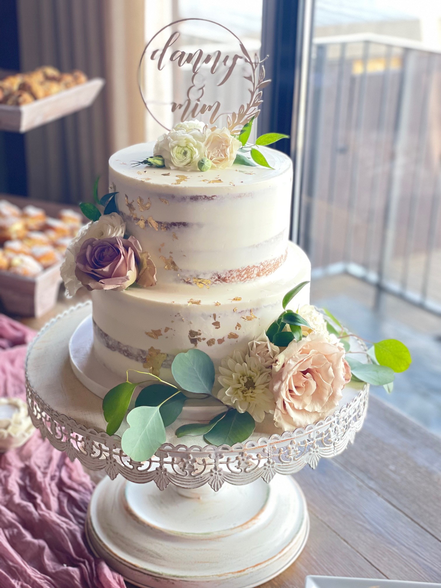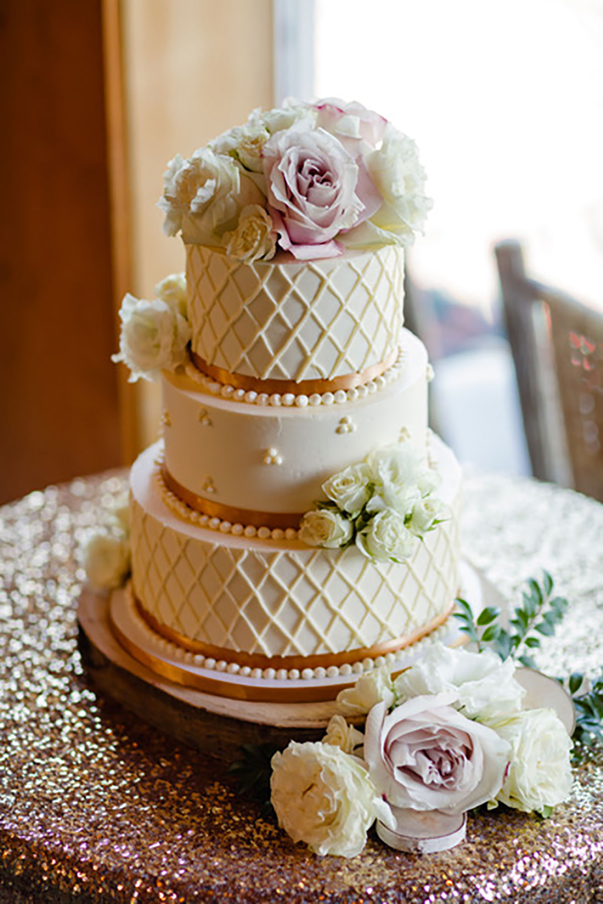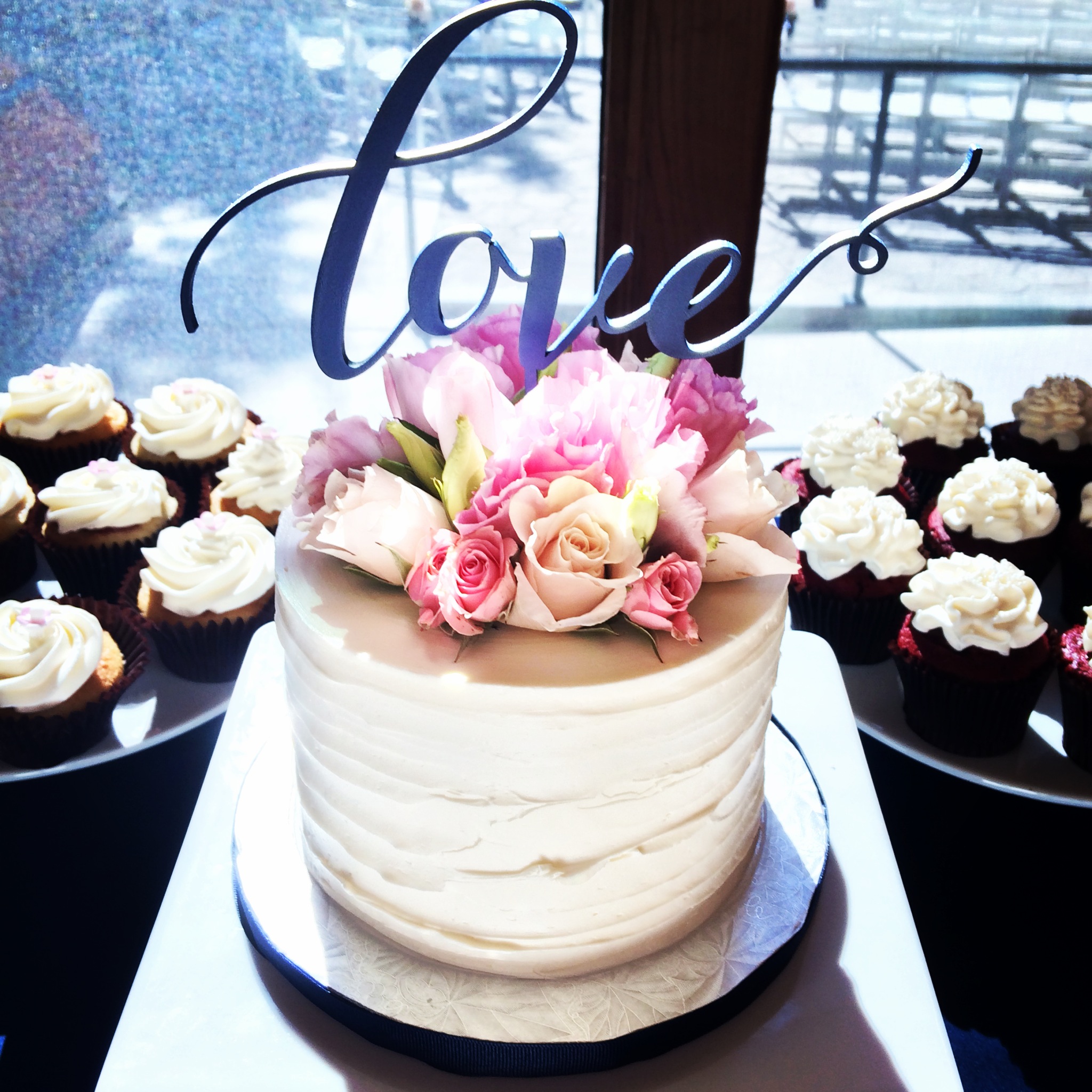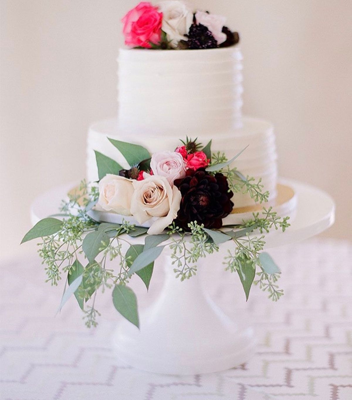 - Buttercream, white roses & eucalyptus