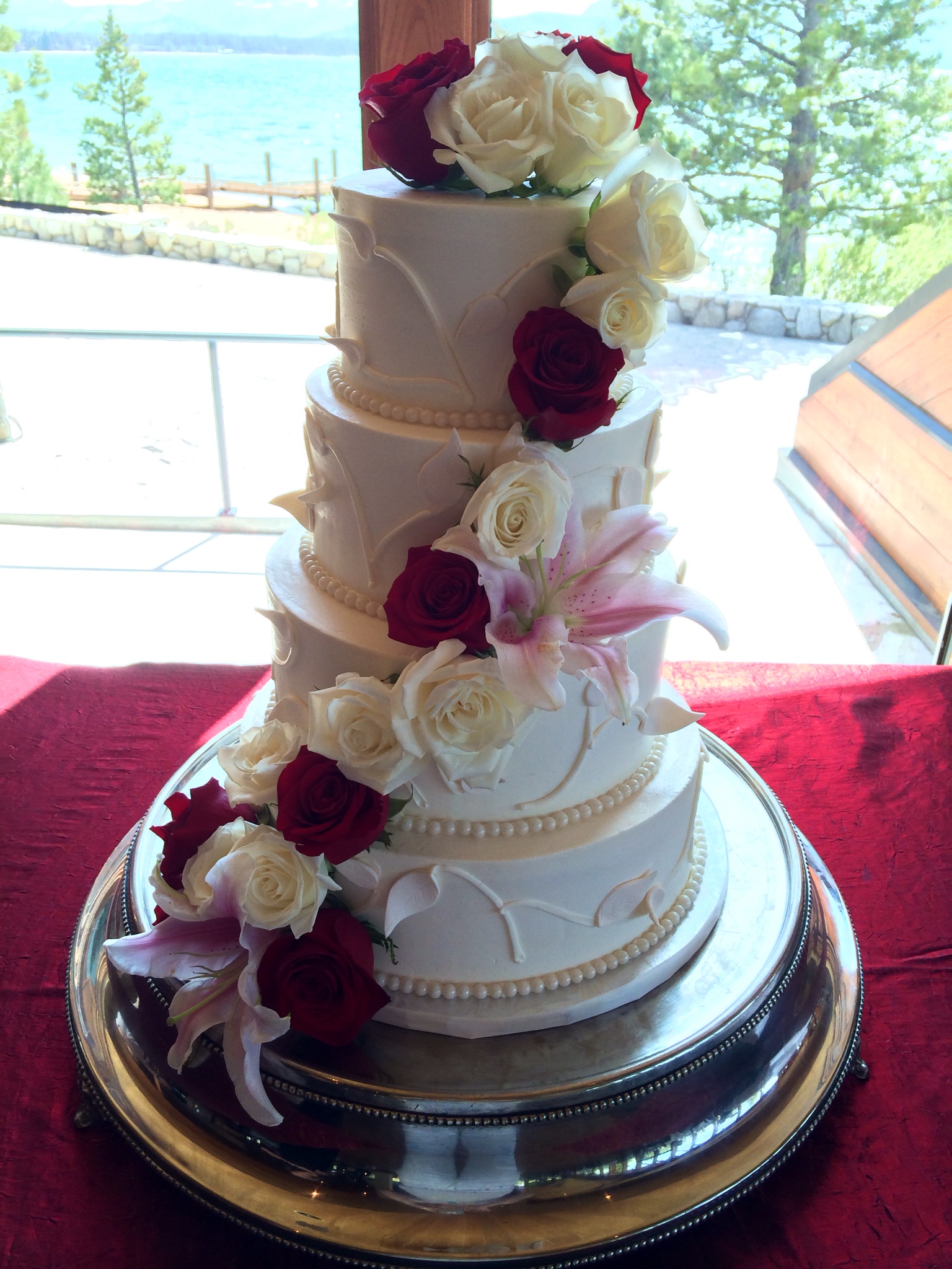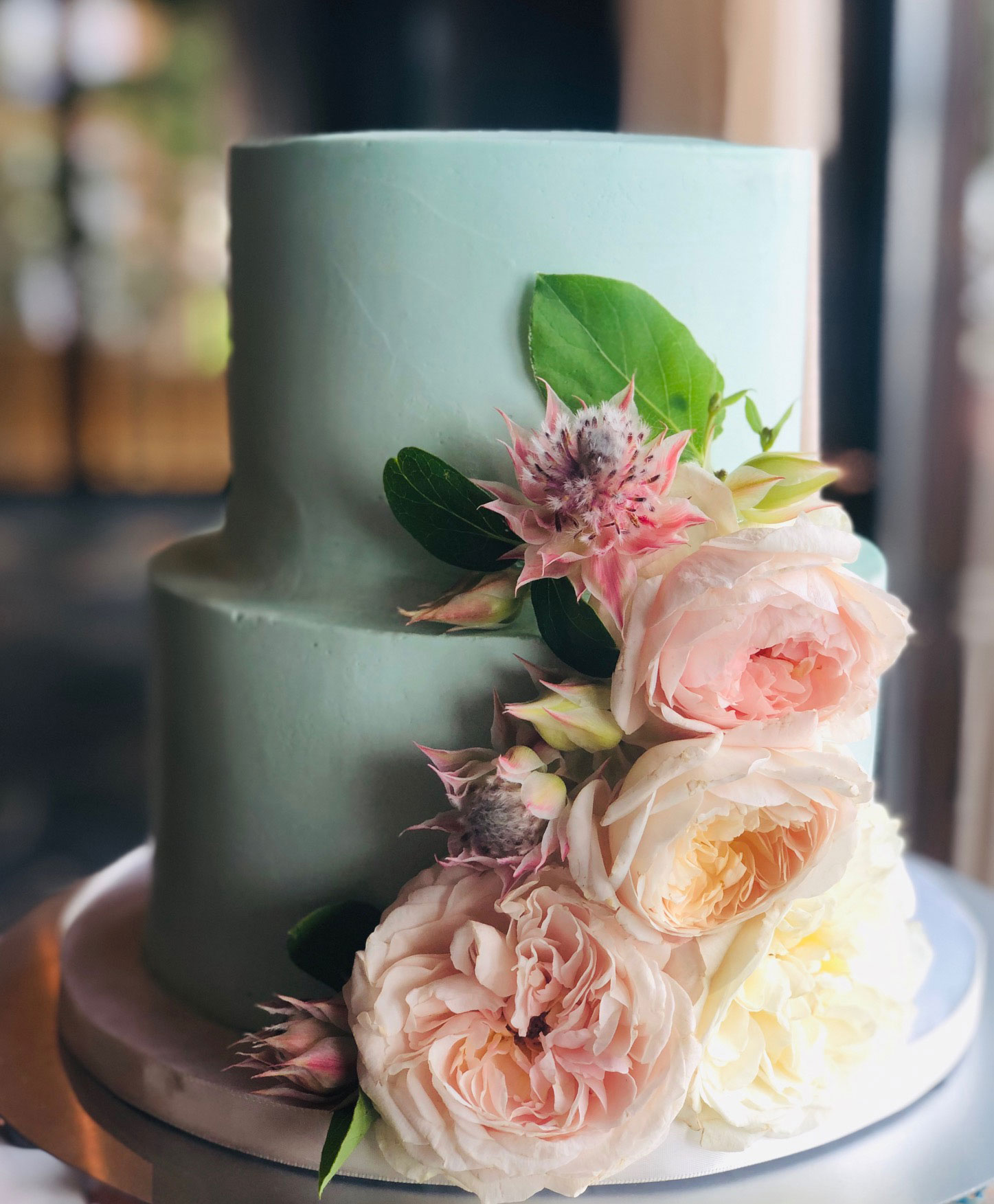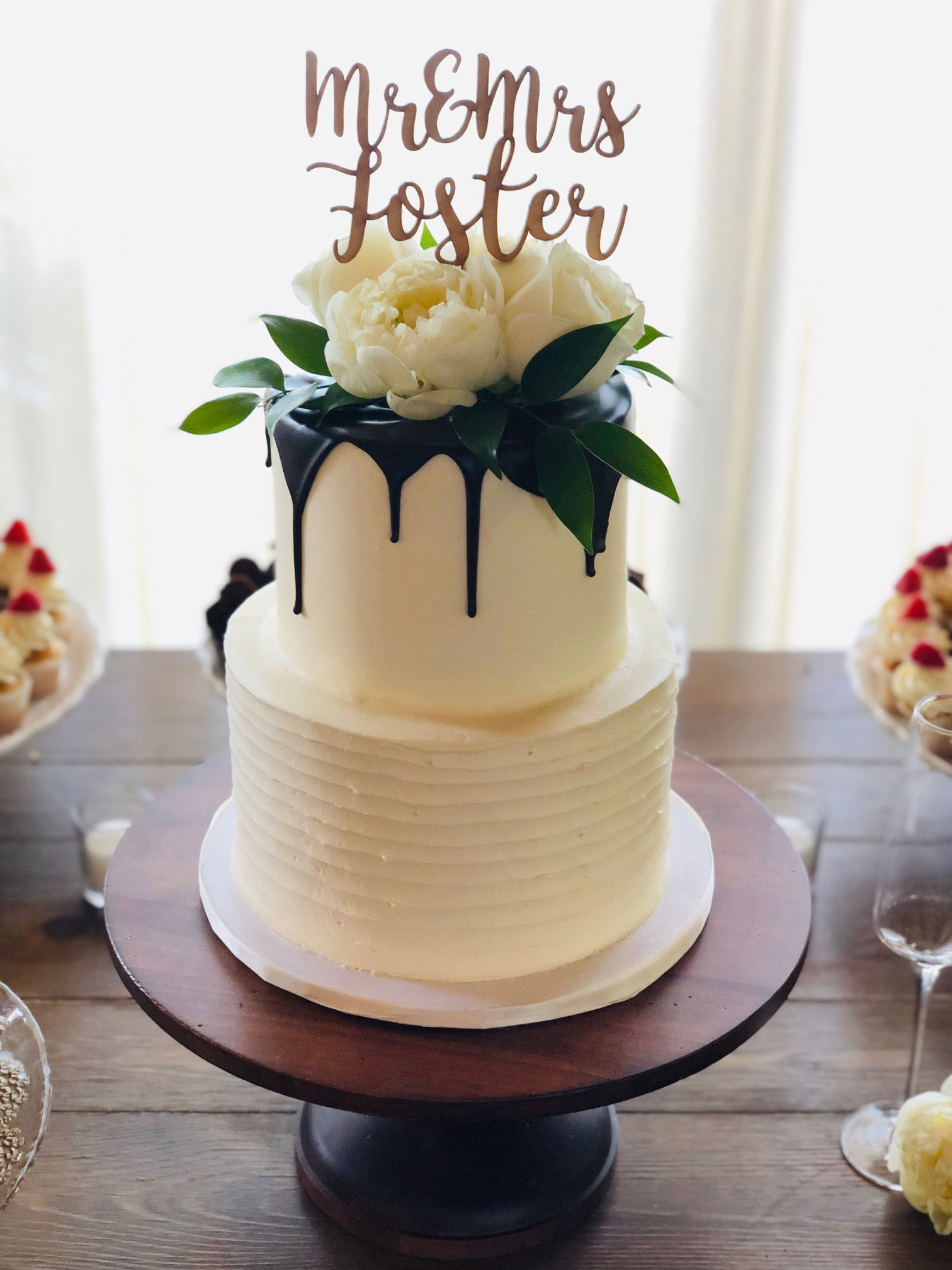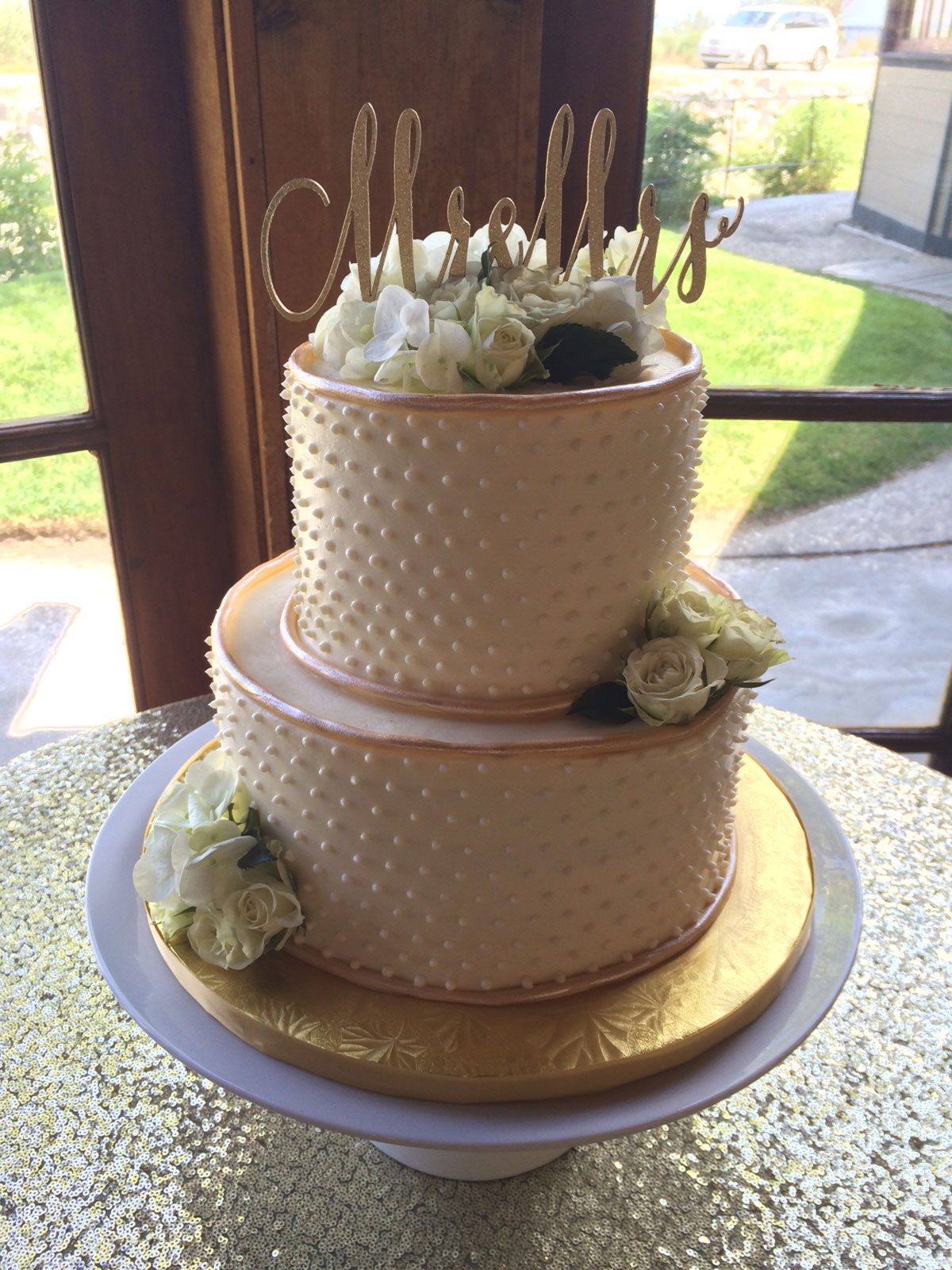 - Buttercream, white roses & eucalyptus
