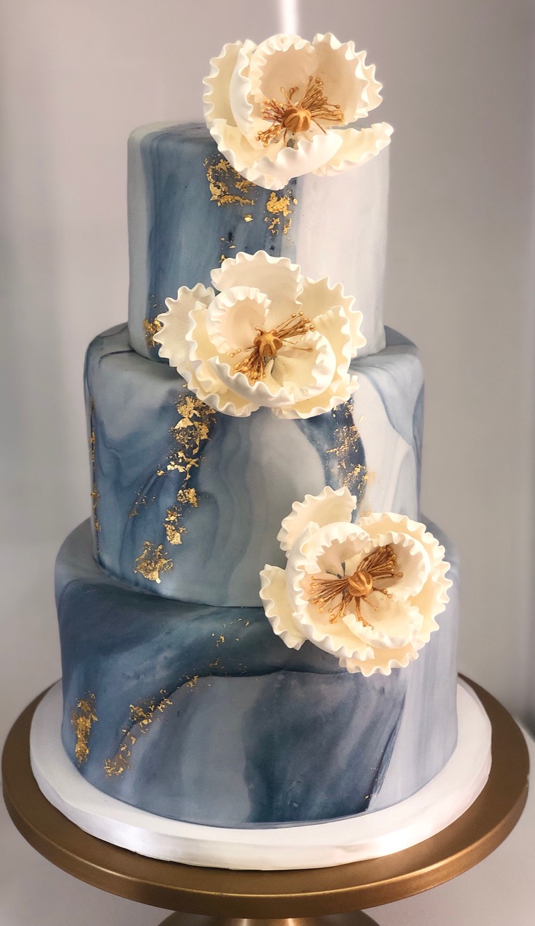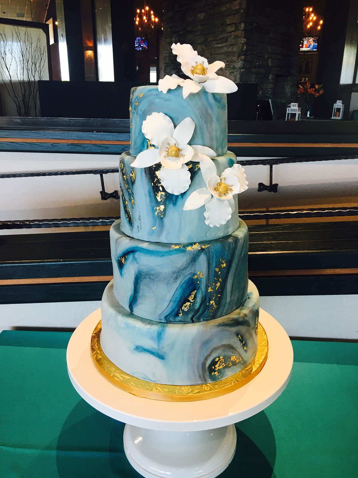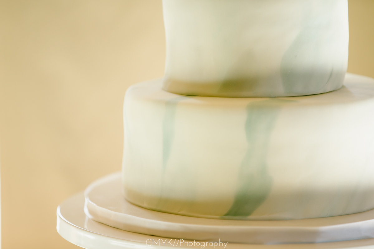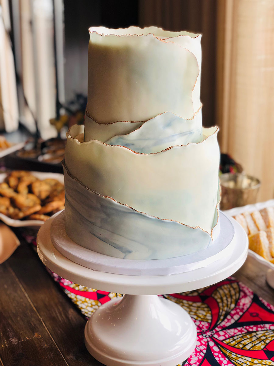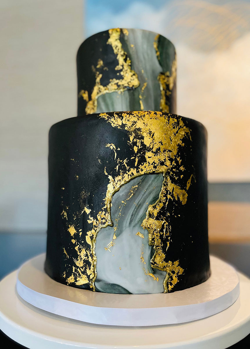 - Marbled fondant wrap with gold trim
