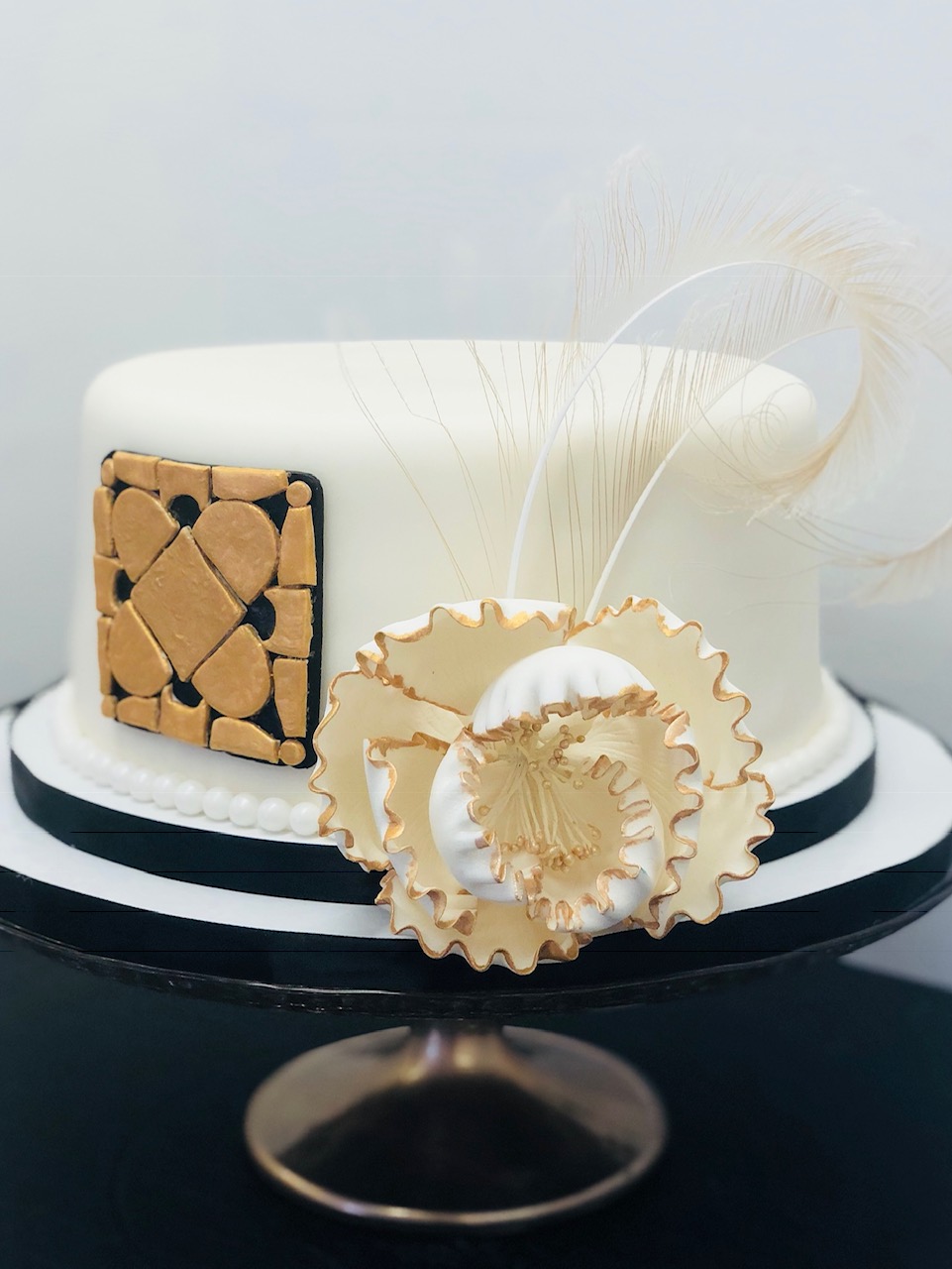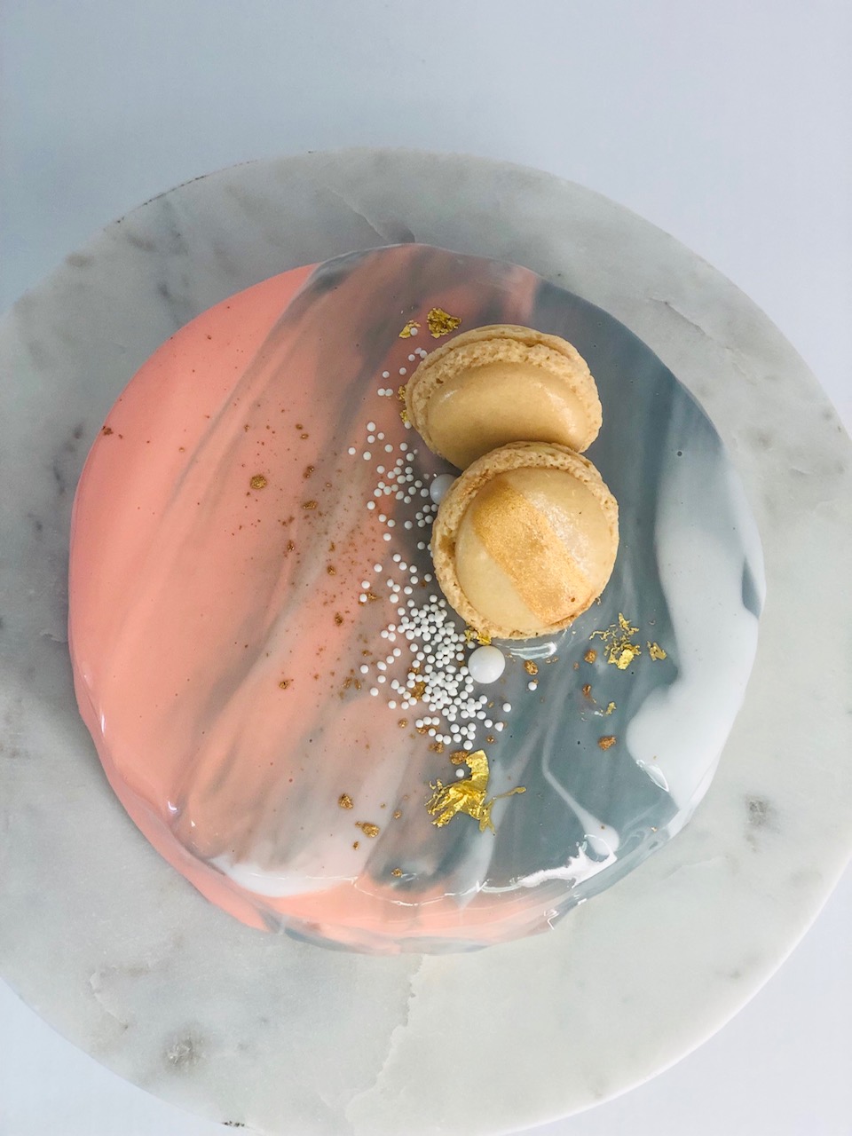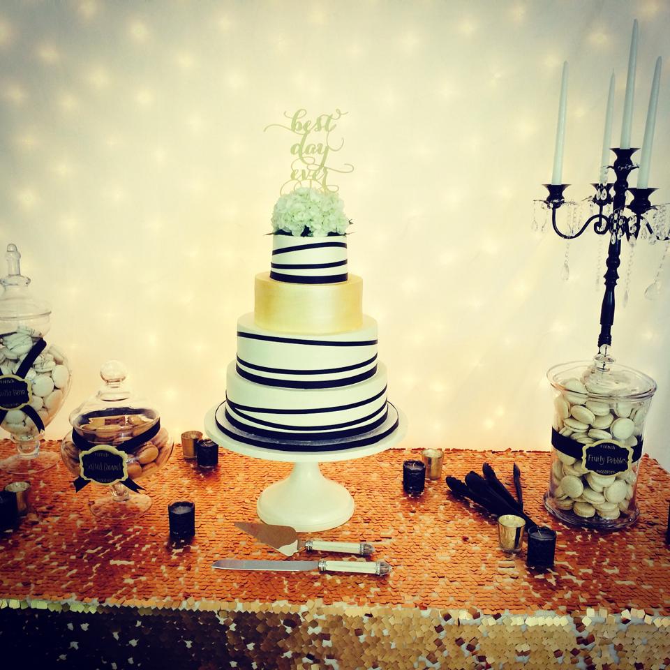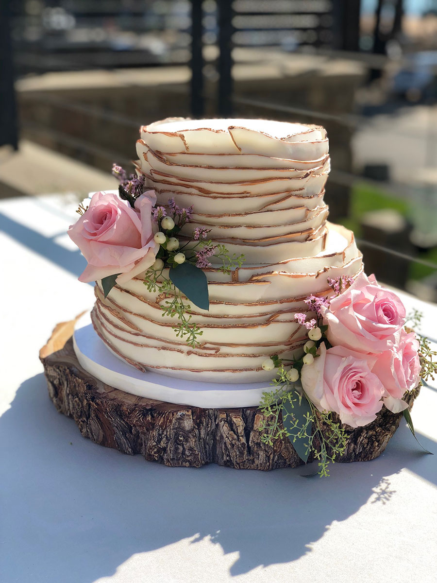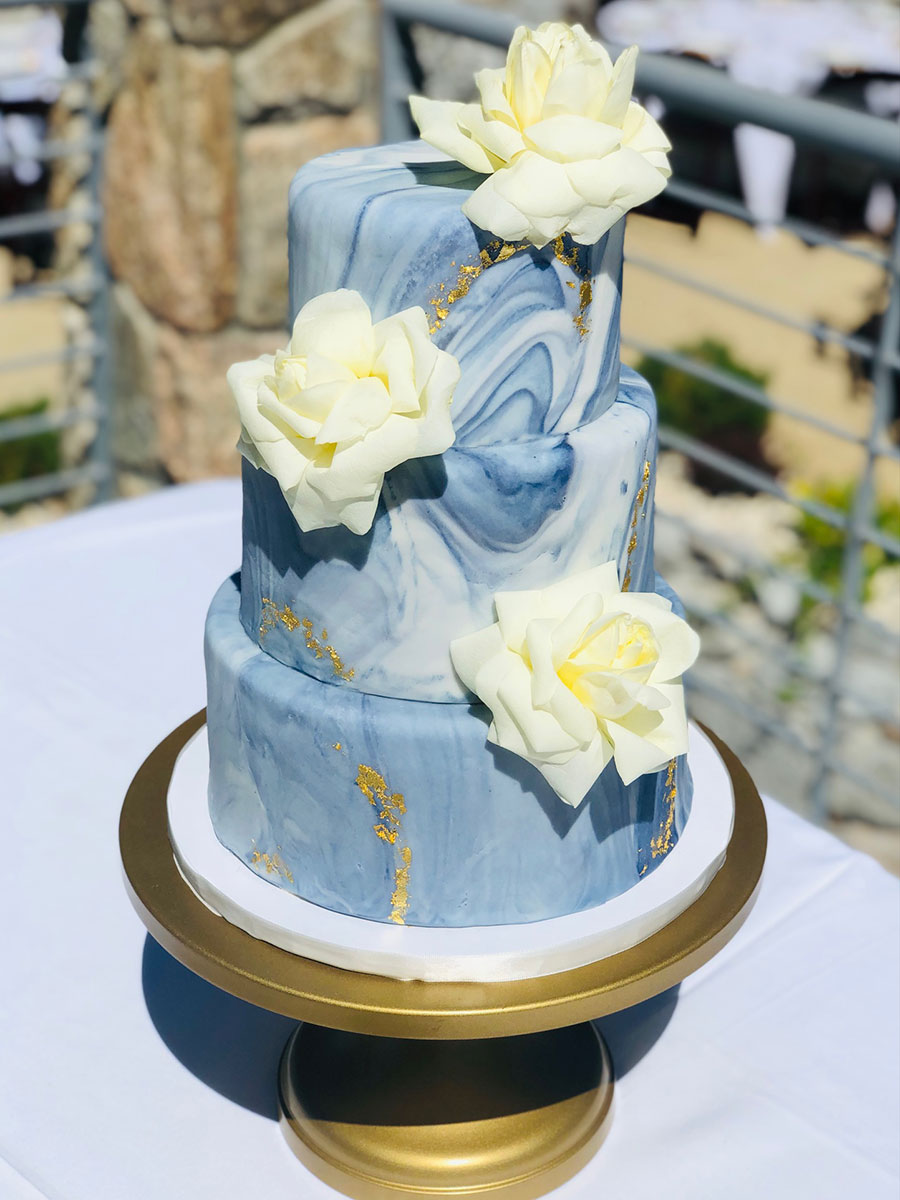 - Marbled fondant wrap with gold trim