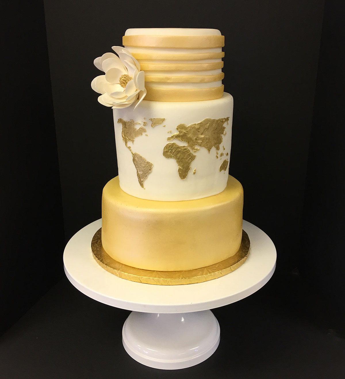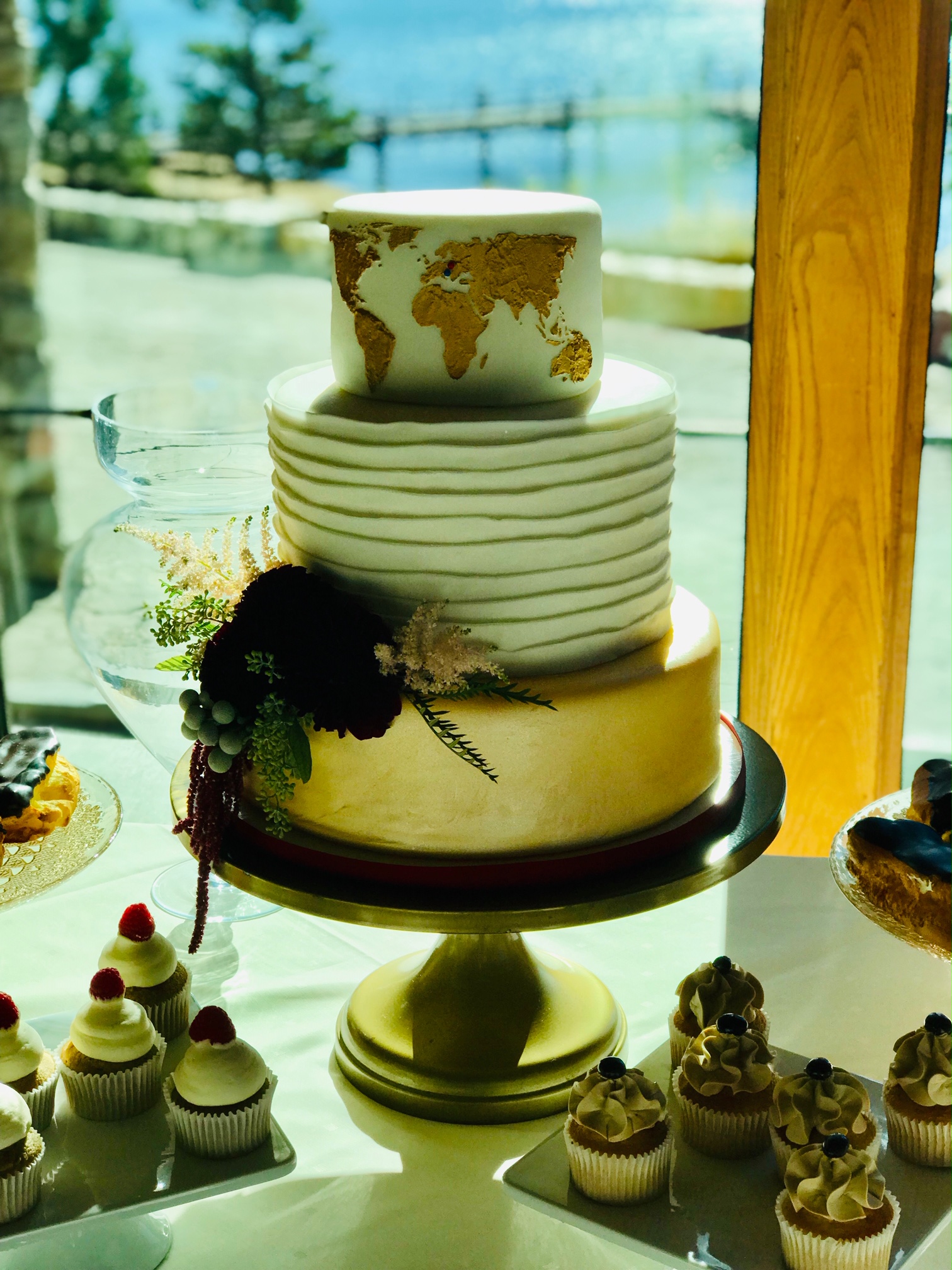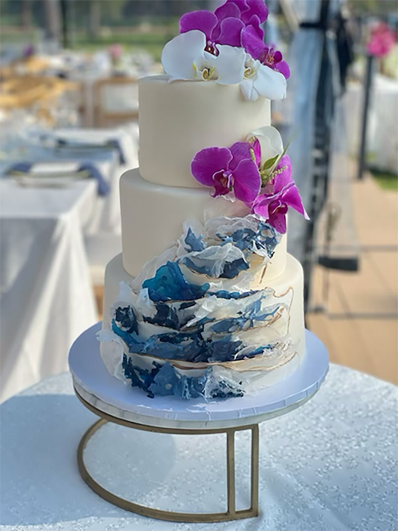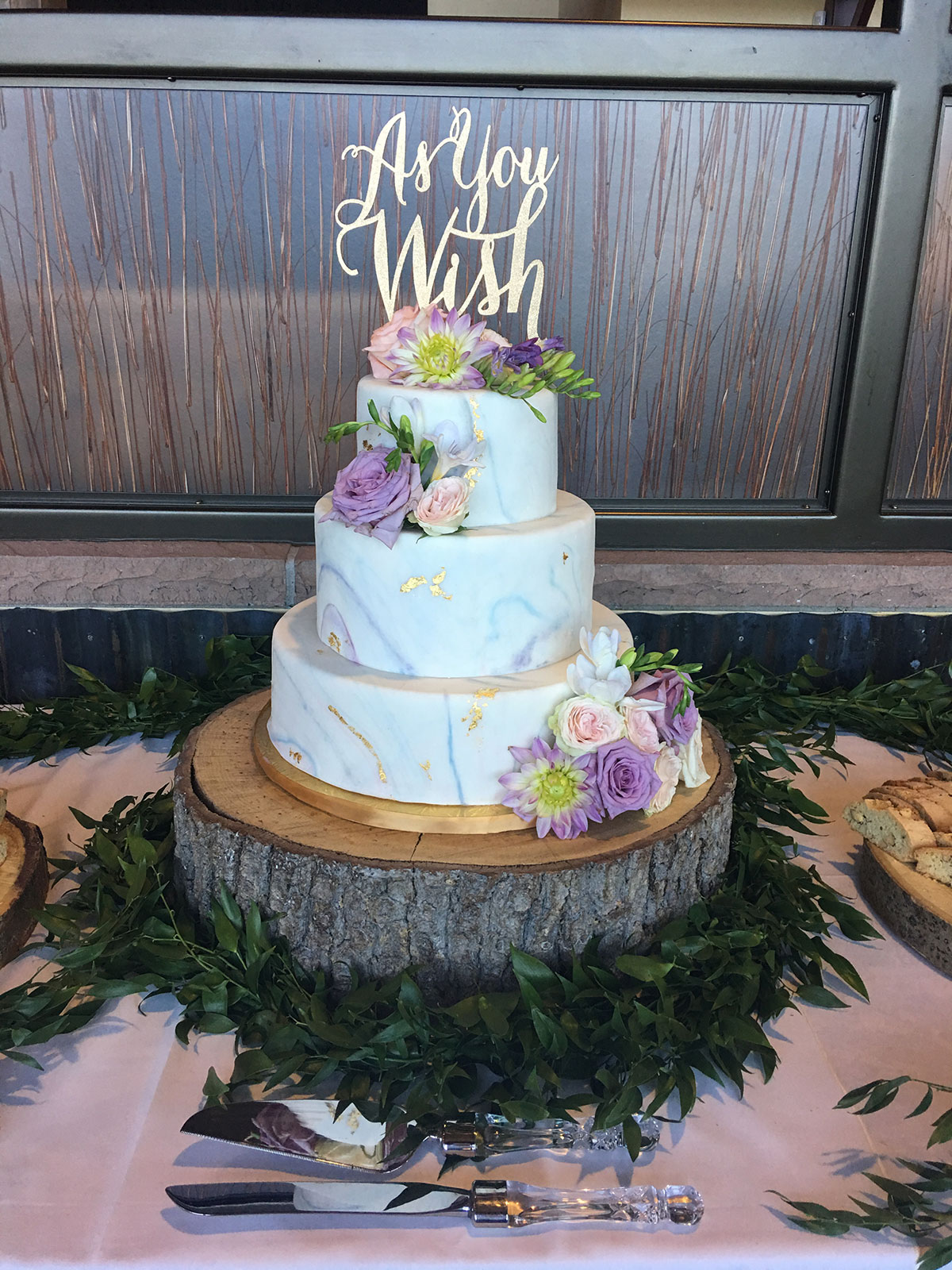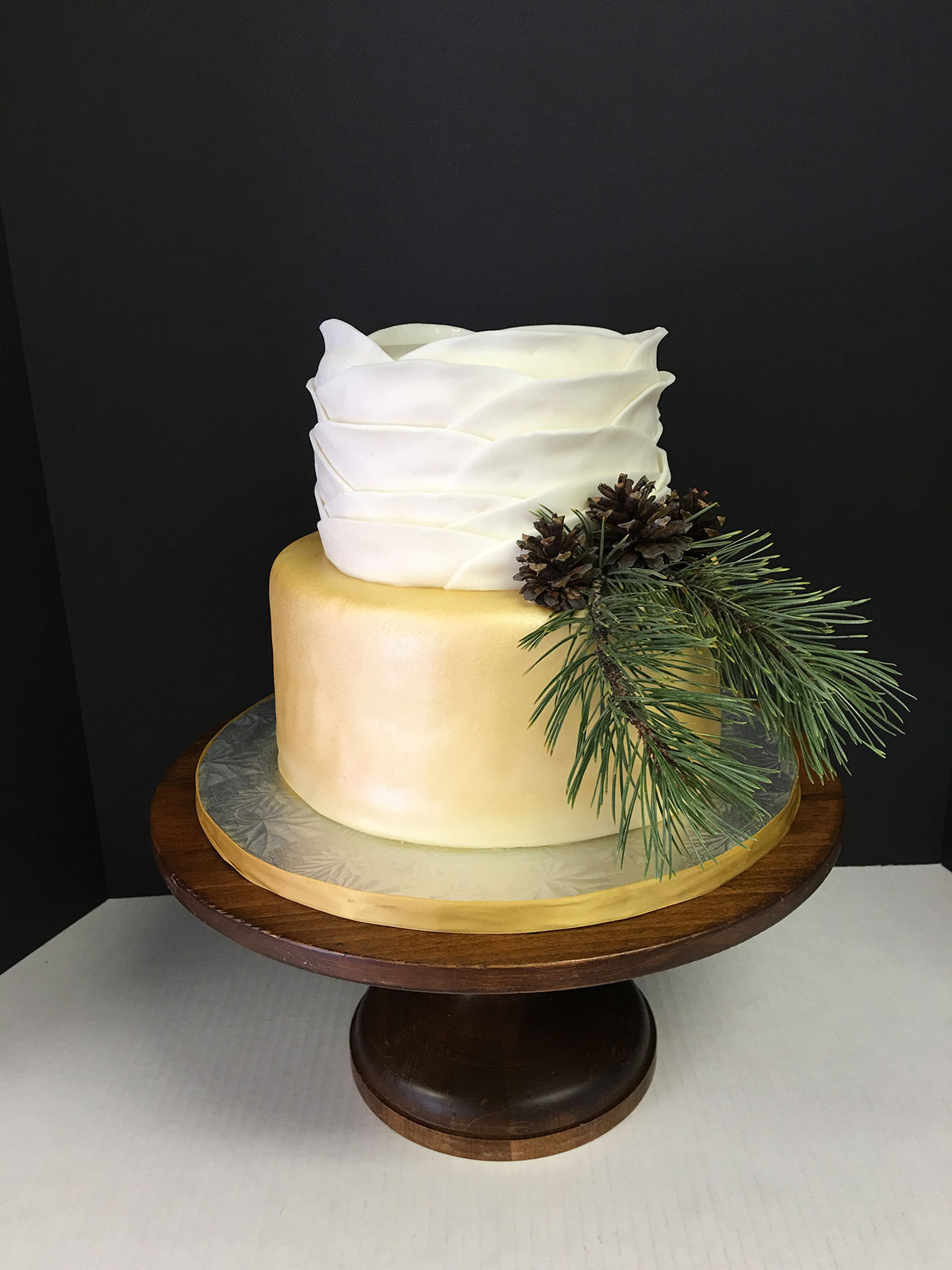 - Marbled fondant wrap with gold trim