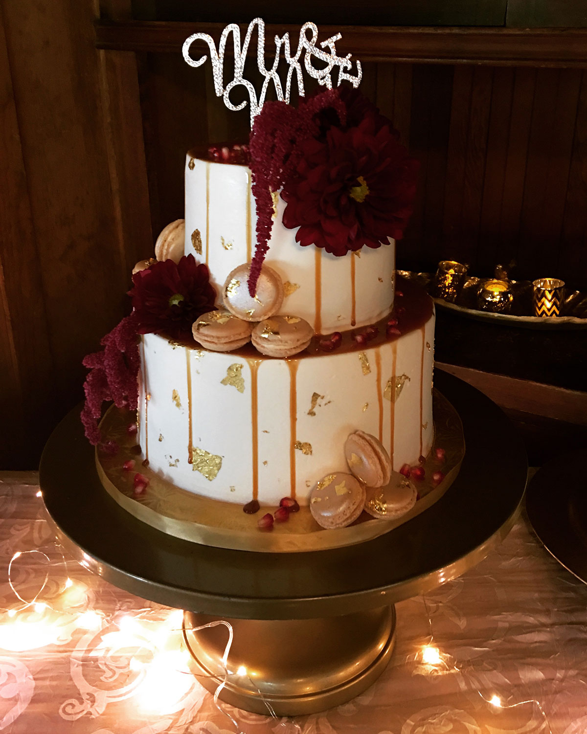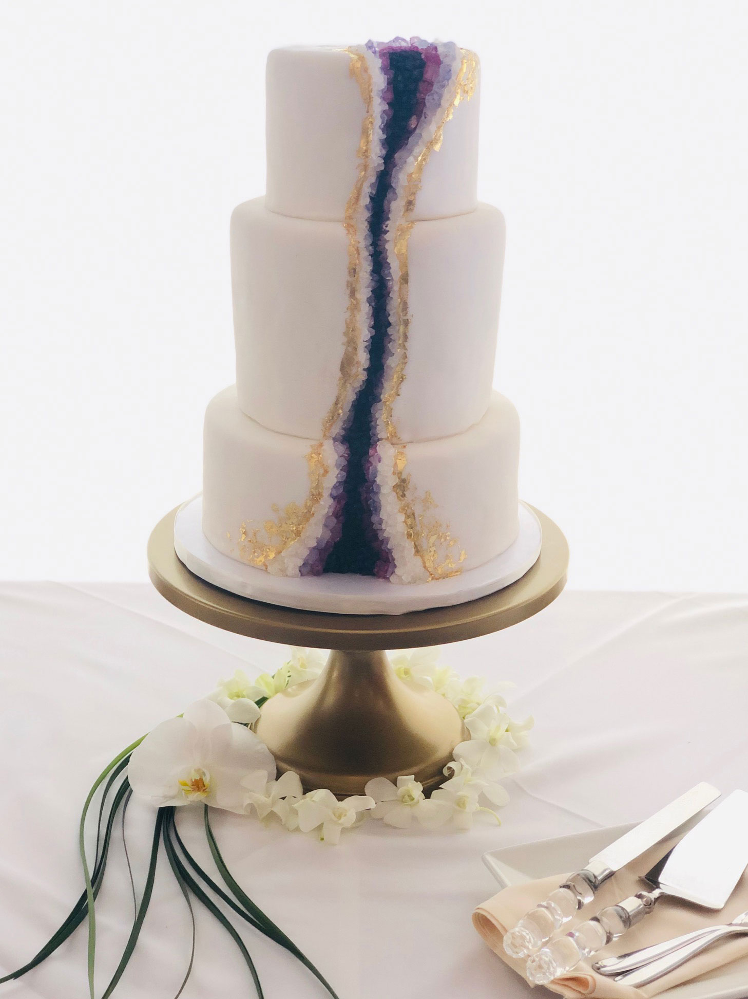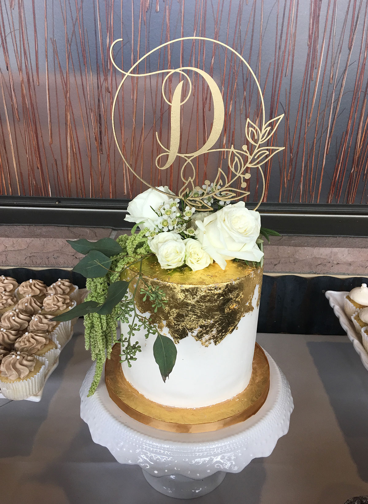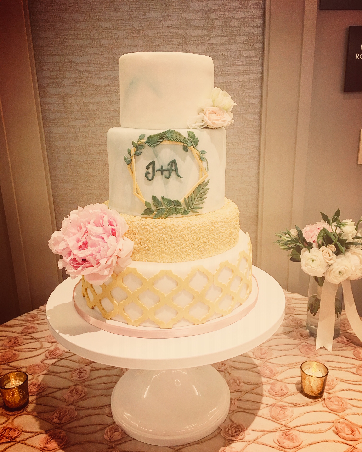 - Marbled fondant wrap with gold trim